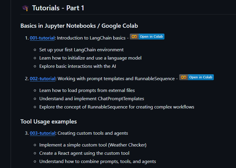This is intended for those that are somewhat new to python and LangChain. The first two exercises get you started and support Jupyter notebooks - intended to get you your very first Hello World implementation of LangChain.